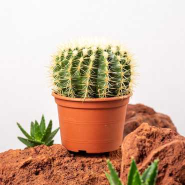Echinokaktus Grusonii to powoli rosnący kaktus o kulistej budowie. Polecamy jako samotną ozdobę w doniczce lub w towarzystwie innych kaktusów bądź sukulentów.