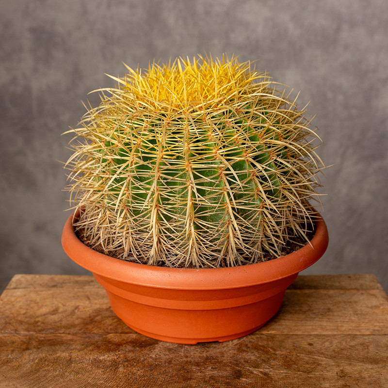 Echinokaktus Grusonii to powoli rosnący kaktus o kulistej budowie. Polecamy jako samotną ozdobę w doniczce lub w towarzystwie innych kaktusów bądź sukulentów.