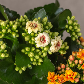 Kalanchoe ‘Calandiva’ (blossfeldiana, żyworódka) jest byliną, która w naturalnych warunkach dorasta do 30 centymetrów wysokości. Rodzaj Kalanchoe obejmuje ponad 200 gatunków. Najpiękniej urozmaicone formy pochodzą z gór północnego Madagaskaru. Liście są ciemnozielone z czerwonym obrzeżeniem, całobrzegie lub ząbkowane. Kwiaty jasnoczerwone zebrane w baldachogrona umieszczone są na szczytach pędów. Roślina kwitnie od stycznia.