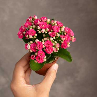 Kalanchoe to uroczy, kompaktowy sukulent, który zachwyca swoimi intensywnie różowymi kwiatami. Jest idealnym wyborem dla osób szukających łatwej w pielęgnacji rośliny. Charakteryzuje się mięsistymi, zielonymi liśćmi, które tworzą gęste rozety. Na szczycie pędów rośliny pojawiają się piękne, drobne kwiaty w intensywnym różowym kolorze, które mogą utrzymywać się przez kilka tygodni.