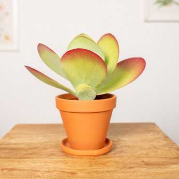 Kalanchoe thyrsiflora to oryginalna roślina z rodziny gruboszowatych (Crassulaceae). Pochodzi z obszarów Południowej Afryki. Ma piękne, pionowo ustawione, mięsiste liście w szarozielonym kolorze z czerwonymi końcówkami. Blaszka liściowa pokryta jest woskowatym nalotem uniemożliwiającym utratę wody.
