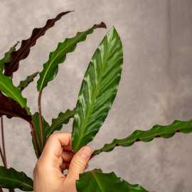 Większość kalatei podbija serca niesamowitymi wzorami na liściach. Kalatea falistolistna to odmiana, która uracza prostą elegancją i przyjemną w dotyku fakturą liści.