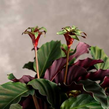 Calathea crocata 'Maravida', to wyjątkowa roślina doniczkowa, która zachwyca nie tylko pięknym ulistnieniem, ale także niezwykłymi kwiatami. To rzadko spotykana cecha wśród kalatei, co czyni ją prawdziwą perełką dla miłośników egzotycznych roślin.