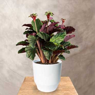 Kalatea ( Calathea ) to roślina, którą polecamy osobom kochającym wyzwania. Jej posiadanie wiąże się z zapewnieniem roślinie przede wszystkim odpowiedniej temperatury oraz wilgotności rodem z lasów tropikalnych z Ameryki Południowej. To właśnie przez te wymogi kalatea jest rośliną rzadko spotykaną w domach, a jej obecność świadczy o wiedzy i umiejętnościach właściciela. Kalatea charakteryzuje się przepięknymi liśćmi, zróżnicowanymi pod względem gatunku, na których dumnie prezentują się ciekawe wzory. Uprawiające ją osoby mogą zaobserwować przepiękny rytuał –wieczorem roślina zasypia, ustawiając blaszki w pionie.