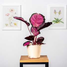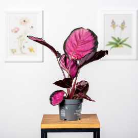 Kalatea 'Rosa' (Calathea 'Rosa') roślina o pięknym różowym rumieńcu na liściach.