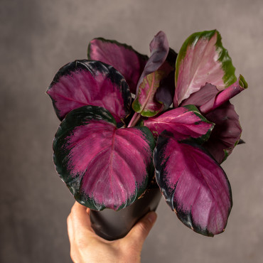 Kalatea 'Rosa' (Calathea 'Rosa') roślina o pięknym różowym rumieńcu na liściach.