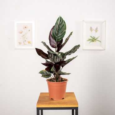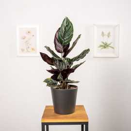 Kalatea 'Sanderiana' ( Calathea ornata ) to roślina, którą polecamy osobom kochającym wyzwania. Jej posiadanie wiąże się z zapewnieniem roślinie przede wszystkim odpowiedniej temperatury oraz wilgotności rodem z lasów tropikalnych z Ameryki Południowej. To właśnie przez te wymogi kalatea jest rośliną rzadko spotykaną w domach, a jej obecność świadczy o wiedzy i umiejętnościach właściciela. Kalatea charakteryzuje się przepięknymi liśćmi, zróżnicowanymi pod względem gatunku, na których dumnie prezentują się ciekawe wzory. Uprawiające ją osoby mogą zaobserwować przepiękny rytuał –wieczorem roślina zasypia, ustawiając blaszki w pionie.