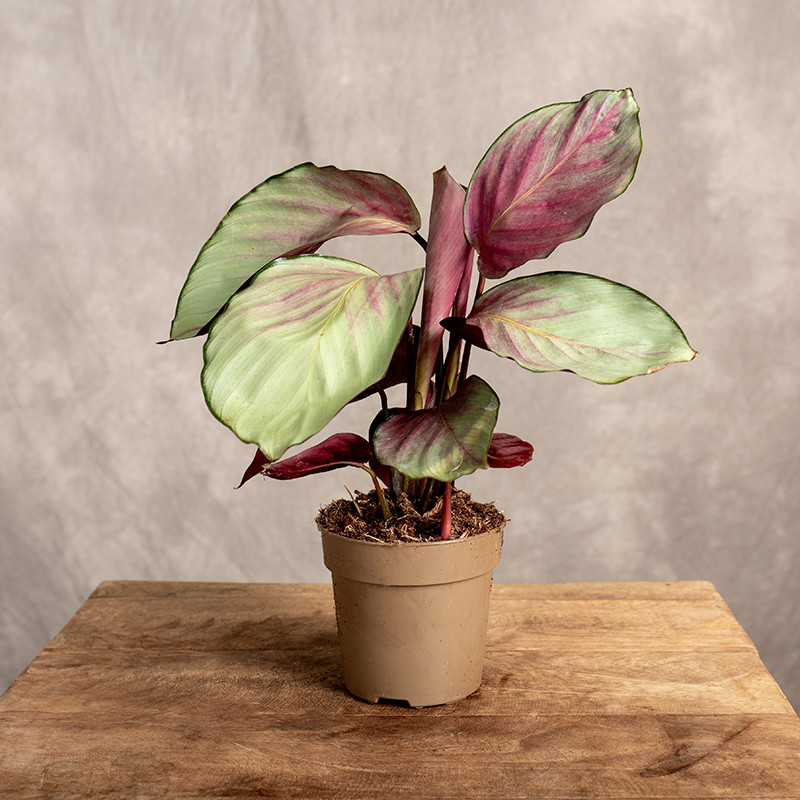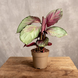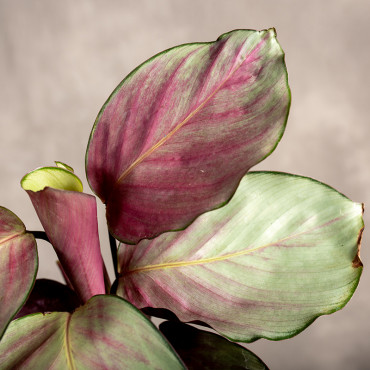 Kalatea ‘Silver Plate’ to elegancka roślina ozdobna z rodziny marantowatych, ceniona za swoje wyjątkowe, dekoracyjne liście. Jej blaszki liściowe mają unikalne, srebrzysto-zielone ubarwienie z różowymi akcentami, a spód liścia przybiera purpurowy odcień, charakterystyczny dla wielu kalatei.