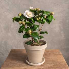 Normalnie okres kwitnienia przypada od stycznia do kwietnia, ale dzięki różnorodności odmian kwitnące kamelie można spotkać od listopada do kwietnia. Od połowy maja do połowy września najlepiej kamelii będzie w półcienistym zakątku ogrodu albo na osłoniętym od przeciągów balkonie. Po połowie września stawiamy ją w chłodnym pomieszczeniu ( 10 - 15 °C ) aż do otwarcia pąków. W czasie kwitnienia można ją postawić w trochę cieplejszym miejscu ( ok.. 15 °C ), po kwitnieniu znów przenosimy do chłodnego ( 6 - 10 °C ). Należy pamiętać by roślina była zawsze odwrócona tą samą stroną do światła. Latem podlewamy równomiernie i często, nawozimy nawozem płynnym bez wapnia. Musimy pamiętać, że w czasie wypuszczania nowych pędów nie można doprowadzić do przesychania bryły korzeniowej. Kiedy młode liście są całkiem wyrośnięte ( na przełomie czerwca i lipca ) zmniejszamy podlewanie, aż do momentu zawiązania pąków. Zimą podlewamy regularnie dość obficie. Dobrze jest utrzymywać dość dużą wilgotność w powietrza. Roślinę przesadzamy dopiero wówczas, gdy korzenie stają się widoczne przy brzegu doniczki. Podłożem jest próchnicza kwaśna ziemia, najlepsze jest ziemia dla rododendronów.