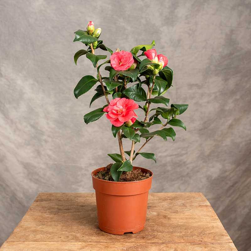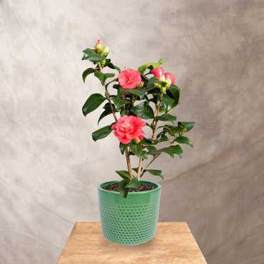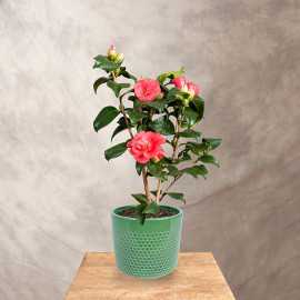 Kamelia japońska pochodzi z chłodnych, górzystych lasów Japonii, ale występuje też w Chinach i na Półwyspie Koreańskim. Nazwę swą zawdzięcza jezuicie, ojcu Georgowi Josefowi Kamel, misjonarzowi zmarłemu w Manili w 1706r. W Europie, uprawę kamelii rozpoczęto w 1800 roku, w USA zaś w 1787r , ale tak naprawdę uprawa kamelii rozwinęła się po 1935r. Klimat Ameryki pozwala na uprawę tej rośliny na wolnym powietrzu. U nas znajduje zastosowanie głównie jako roślina doniczkowa . Ma błyszczące, skórzaste, owalne liście i kwiaty przypominające kwiat róży w kolorze białym, różowym, czerwonym lub wielokolorowe, zapachem przypominające jaśmin lub bez zapachu.
