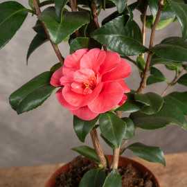 Kamelia japońska 'Mary Williams' to przepiękny, wolno rosnący krzew o dużych, pełnych różowych kwiatach. Charakteryzuje się gęstym pokrojem i ciemnozielonymi, skórzastymi liśćmi. Idealna do miejsc zacienionych. Kwitnie obficie od lutego do kwietnia.