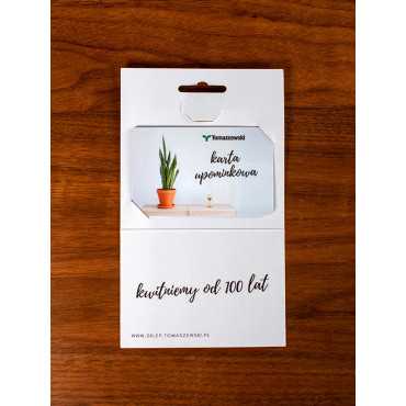Karta upominkowa dostępna o wartości 100 zł, 200 zł lub 500 zł. Wysyłana fizycznie w ładnym prezentowym opakowaniu do wykorzystania w sklepach stacjonarnych oraz internetowym. Kartę możemy wykorzystać jednorazowo. Kartą nie opłacimy wysyłki roślin