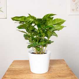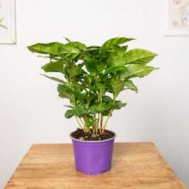 Rodzaj Coffea obejmuje 50 gatunków krzewów i małych drzew zadomowionych w tropikach Azji i Afryki. Zwyczaj picia kawy przywędrował na początku XV w. z Etiopii do Arabii, a uprawa roślin kawowych nieco później. Od niepamiętnych czasów najważniejszym gatunkiem jest Coffea arabica, której karłową formę Nana można bez większego trudu uprawiać w pokoju. Liście kawy są ciemne, zawsze zielone, nieco pokarbowane i błyszczące, wyrastające po dwa naprzeciw siebie. Kwiaty są małe, białe i pachnące. Wyrastają z kątów liści w trzecim lub w czwartym roku uprawy. Okres kwitnienia przypada na miesiące letnie.