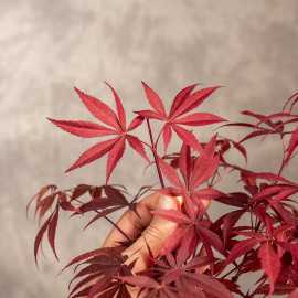 Klon palmowy (Acer palmatum) to bardzo dekoracyjne drzewko o wzniesionym pokroju. Jest często wybierany ze względu na swoje charakterystyczne liście. Są średniej wielkości, 5-7-klapowe, głęboko powcinane w purpurowo-czerwonym kolorze.