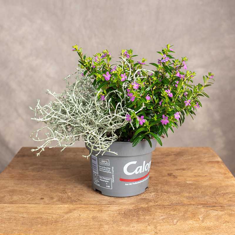 Kompozycja jesienna składająca się z kalocefalusa i kufei hyzopolistnej.