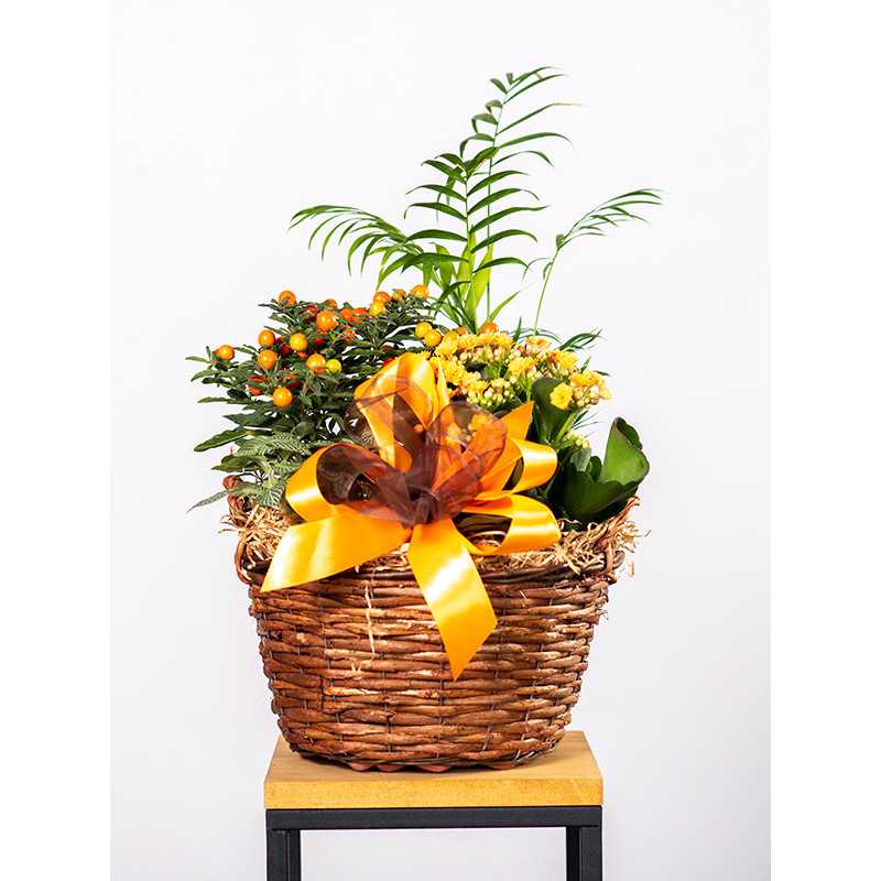 Mix roślin w eleganckim koszu udekorowany przez florystę. Cena zawiera zestaw: roślina + kosz + przybranie. Dostawa tylko na terenie Warszawy. Zdjęcie jest poglądowe, do kompozycji mogą zostać dobrane inne rośliny.