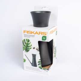 Konewka marki 'Fiskars'. Precycyjna długa i cienkiej wylewka pozwala dotrzeć w trudno dostępne miejsca. Łatwa do napełnienia konstrukcja zapobiega rozlaniu oraz kapaniu. Konstrukcja dzbanka dopasowuje się do kształtu dłoni gwarantuje wygodny chwyt. Obudowa wykonana z cienkiej i trwałej żywicy oraz w 30% z materiału sztucznego, pochodzącego z recyklingu.