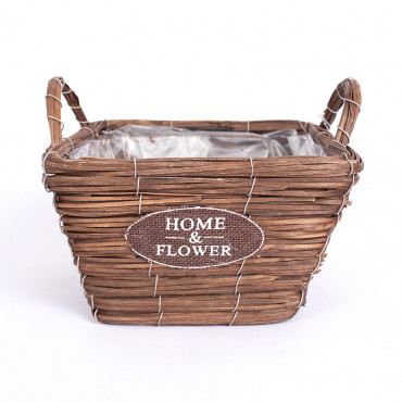 Kwadratowy kosz wyplatany w odcieniu ciemnego brązu. W środku posiada folie zabezpieczającą przez zabrudzeniem czy zalaniem.