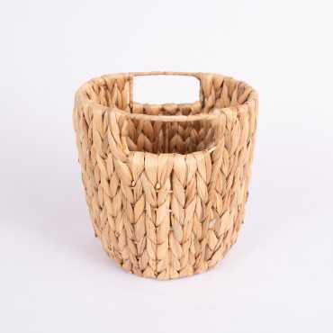 Kosz pleciony z uchwytem. Nie posiada foli zabezpieczającej przed zalaniem czy zabrudzeniem. Dobrze na dnie kosza położyć podstawkę.