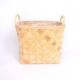 Prostokątny kosz wyplatany w odcieniu jasnego beżu. W środku posiada folie zabezpieczającą przez zabrudzeniem czy zalaniem.