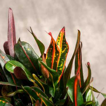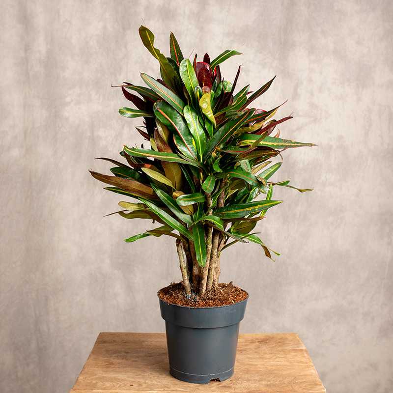 Krotony dorastają do wysokości ok. 1,2 m w odpowiednio dużych doniczkach. W sprzyjających warunkach mogą osiągnąć przyrosty 20 - 25 cm. W lecie dojrzałe rośliny wytwarzają niepozorne kwiatostany. Kroton jest rośliną światłolubną. Stopień przebarwienia ich liści uzależniony jest od warunków świetlnych - im więcej światła tym przebarwienia ładniejsze. Lubi temperaturę w granicach 15 °C zimą i 25 - 27 °C latem. Podlewamy go średnio 2 - 3 razy w tygodniu utrzymując stałą wilgotność podłoża i nie dopuszczając do przeschnięcia. Zimą wystarczy krotonowi podlewanie co 4 - 5 dni. Roślinę nawozimy nawozem płynnym co 2 tygodnie. Krotony lubią zraszanie, należy go jednak unikać w czasie pełnego słońca. Przy umiejętnym pielęgnowaniu kroton może rosnąć latami.