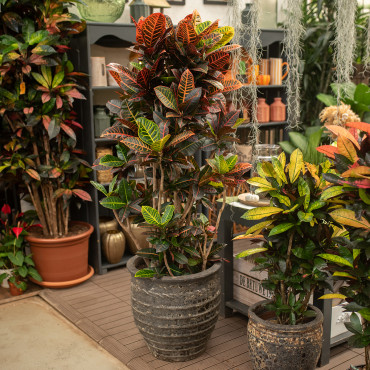 Krotony dorastają do wysokości ok. 1,2 m w odpowiednio dużych doniczkach. W sprzyjających warunkach mogą osiągnąć przyrosty 20 - 25 cm. W lecie dojrzałe rośliny wytwarzają niepozorne kwiatostany. Kroton jest rośliną światłolubną. Stopień przebarwienia ich liści uzależniony jest od warunków świetlnych - im więcej światła tym przebarwienia ładniejsze. Lubi temperaturę w granicach 15 °C zimą i 25 - 27 °C latem. Podlewamy go średnio 2 - 3 razy w tygodniu utrzymując stałą wilgotność podłoża i nie dopuszczając do przeschnięcia. Zimą wystarczy krotonowi podlewanie co 4 - 5 dni. Roślinę nawozimy nawozem płynnym co 2 tygodnie. Krotony lubią zraszanie, należy go jednak unikać w czasie pełnego słońca. Przy umiejętnym pielęgnowaniu kroton może rosnąć latami.