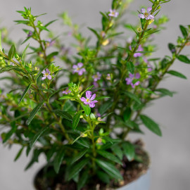 Kufea wąskolistna to gatunek rośliny doniczkowej, który wyróżnia się wąskimi, lancetowatymi liśćmi oraz drobnymi kwiatami. Pochodzi z Meksyku, gdzie rośnie w warunkach naturalnych. Kwitnie obficie przez większość roku, a dzięki swojemu niewielkiemu rozmiarowi doskonale nadaje się do uprawy w pojemnikach. Wysokość rośliny wynosi zazwyczaj od 30 do 40 cm.