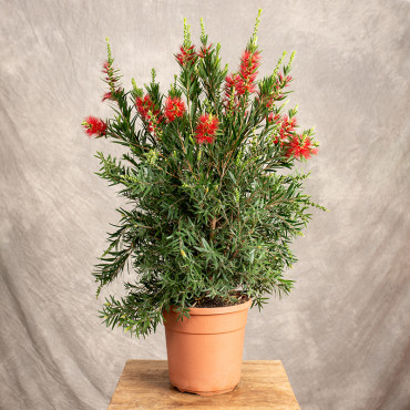 Kuflik to roślina pochodząca z Australii. Posiada intensywnie czerwone kwiatostany przypominające szczotkę do butelek oraz zielone, wydłużone liście, które po roztarciu w dłoniach wydzielają słodki, cytrynowy zapach. Uprawiany w pojemnikach może osiągać do 2 metrów wysokości.