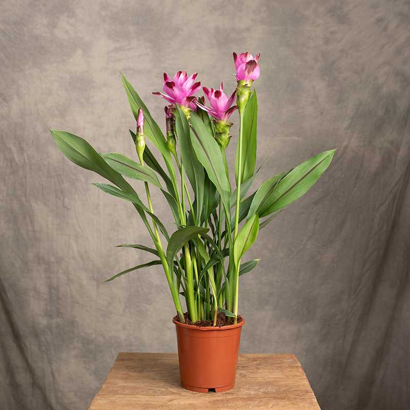 Kurkuma wąskolistna ( Curcuma alismatifolia ) to łatwa w uprawie roślina wyróżniająca się niezwykle pięknymi kolorowymi kwiatostanami.