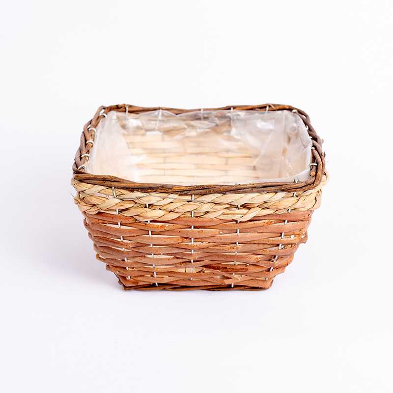 Niski kwadratowy kosz przeplatany. W środku posiada folie zabezpieczającą przez zabrudzeniem czy zalaniem.