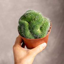 Mammillaria spinosissima cv. Un Pico cristata to niezwykle oryginalny kaktus o wyjątkowym pokroju, ceniony przez kolekcjonerów za swoje nietypowe, faliste ułożenie. Ta mutacja sprawia, że zamiast klasycznych, kolumnowych pędów, roślina tworzy kształty przypominające koralowce lub grzebienie, co nadaje jej spektakularny wygląd. Nazwa Un Pico odnosi się do pojedynczych kolców na brodawkach, które wyróżniają ten kaktus spośród innych.