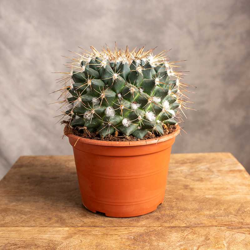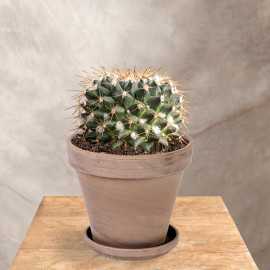 Mammillaria albata var. sanciro to wyjątkowo ozdobny kaktus, wyróżniająca się drobnymi cierniami, które gęsto pokrywają całą roślinę, nadając jej niemal puszysty wygląd. Ta niewielka roślina, o kulistym lub lekko wydłużonym pokroju, idealnie nadaje się na słoneczne i ciepłe parapety. Preferuje dobrze przepuszczalne, mineralne podłoże i dużo słońca. W okresie kwitnienia wytwarza delikatne, różowe lub jasnofioletowe kwiaty, które pojawiają się w okółkach na szczycie rośliny, tworząc piękny kontrast z jej srebrzystą powierzchnią.
