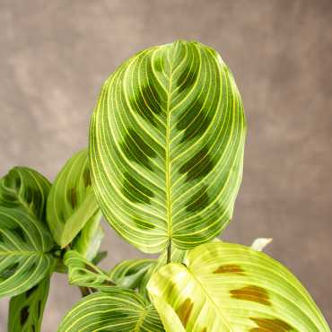 Maranta 'Fantasy' to wyjątkowa roślina doniczkowa, znana ze swoich atrakcyjnych liści i płożącego pokroju. Należy do rodziny marantowatych (Marantaceae). Liście Maranty 'Fantasy' są owalne, duże i miękkie w dotyku. Główną ozdobą tej odmiany to wyjątkowe wzory na liściach – intensywnie zielona, aksamitna blaszka liściowa ozdobiona jest jasnymi, srebrzystymi liniami i plamkami, które tworzą efektowne, abstrakcyjne wzory.