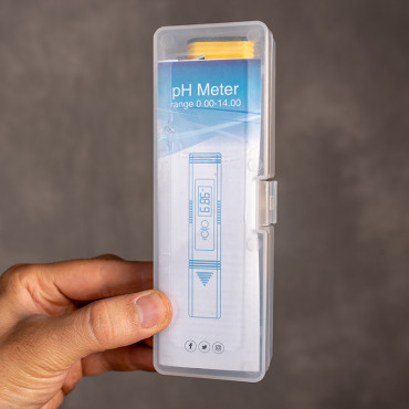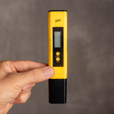 Przed pomiarem należy zdjąć kapturek zabezpieczający, jeśli pod nim pojawią się kryształki, nie jest to powód do niepokoju jest to normalne przy elektrodach pH-metrów. Problem zniknie po przepłukaniu elektrody płynem czyszczącym/wodą. Włącz pH metr przyciskiem na górze urządzenia i zanurz elektrodę do maksymalnego dozwolonego poziomu. Delikatnie zamieszaj miernikiem w roztworze i poczekaj aż odczyt się ustabilizuje.
