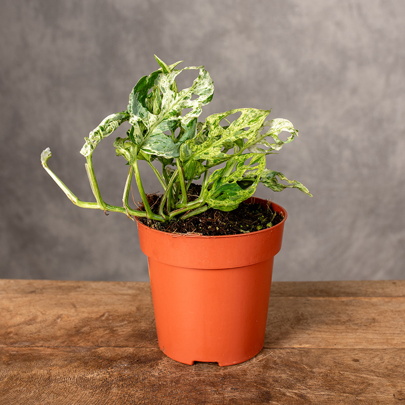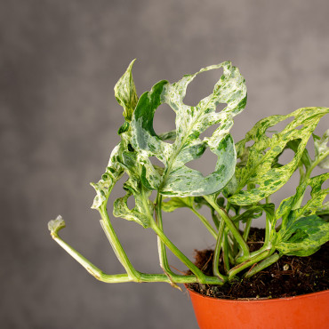 Monstera 'Frozen Freckles' to rzadko spotykana, kolekcjonerska odmiana monstery wyróżniająca się subtelną wariegacją w formie drobnych, nieregularnych plamek i smug. Jej liście przypominają powierzchnię pokrytą zimnym, mlecznym „szronem”, przez co roślina zyskuje unikatowy wygląd wśród wariegowanych monster.