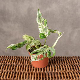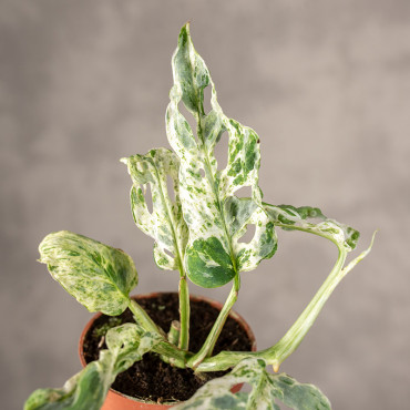 Monstera 'Frozen Freckles' to rzadko spotykana, kolekcjonerska odmiana monstery wyróżniająca się subtelną wariegacją w formie drobnych, nieregularnych plamek i smug. Jej liście przypominają powierzchnię pokrytą zimnym, mlecznym „szronem”, przez co roślina zyskuje unikatowy wygląd wśród wariegowanych monster.