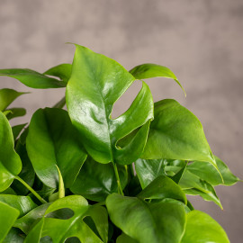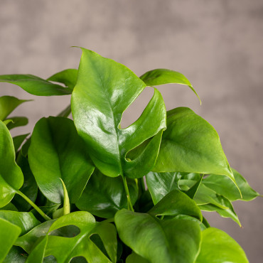 Monstera 'Piccolo' to kompaktowa, elegancka odmiana monstery, która zachwyca gęstym pokrojem i dekoracyjnymi liśćmi o wyjątkowym kształcie. Jej ciemnozielone, błyszczące liście mają charakterystyczne dziurkowania i wcięcia, ale są mniejsze i bardziej subtelne niż u klasycznej monstery deliciosa - dzięki czemu 'Piccolo' doskonale sprawdza się nawet w niewielkich wnętrzach.