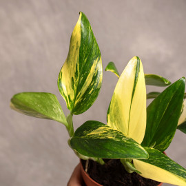Monstera standleyana ‘Variegata’ to wyjątkowa odmiana o drobniejszych, podłużnych liściach, które zachwycają nieregularnymi, kremowo-białymi przebarwieniami. Jej kompaktowy pokrój i możliwość prowadzenia jako pnącze sprawiają, że doskonale odnajduje się zarówno w większych, jak i mniejszych przestrzeniach.