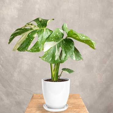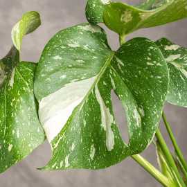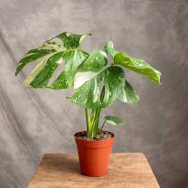 Monstera 'Variegata' jest marzeniem wielu kolekcjonerów, trudno uprawiać ją na masową skalę, ponieważ dużo sadzonek ma tendencję do wracania do zielonej formy, dlatego ta odmiana cały czas trzyma swoją cenę.