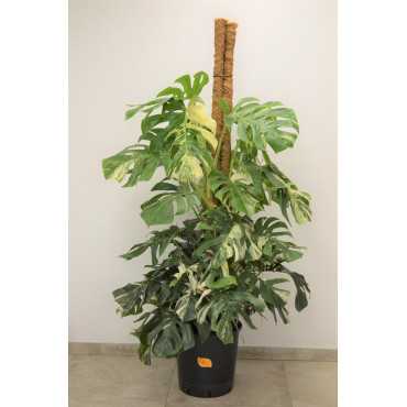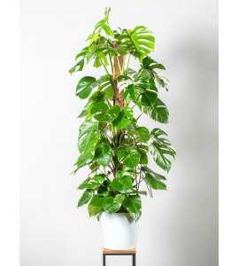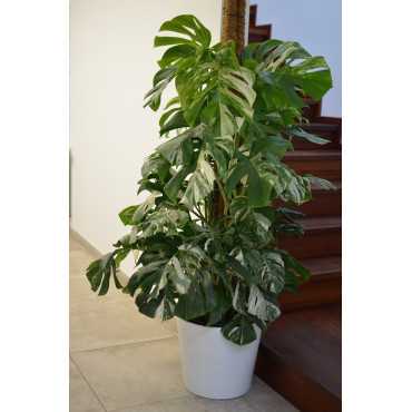 Monstera 'Variegata' to biały kruk - rzadko spotykany okaz z liśćmi o białych przebarwieniach. Monstery są roślinami wyjątkowo łatwymi w uprawie. Ich dekoracyjne duże, dziurawe liście stały się dziś jedną z ikon designu. Liście osiągają do 60 cm średnicy i mogą wyrastać na wysokość nawet 2,5 m. Monstera znakomicie sprawuje się zarówno w domu jak i w biurze, jest również dobrym pomysłem na prezent.