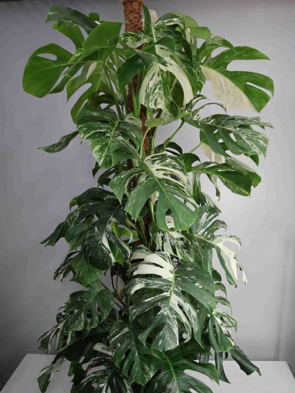 Monstera 'Variegata' jest marzeniem wielu kolekcjonerów, trudno uprawiać ją na masową skalę, ponieważ dużo sadzonek ma tendencję do wracania do zielonej formy, dlatego ta odmiana cały czas trzyma swoją cenę.