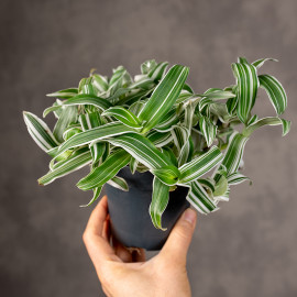 Murdannia loriformis 'Alba Aquilone' to subtelna, dekoracyjna roślina o smukłych, lancetowatych liściach z białymi pasami i delikatnych, śnieżnobiałych kwiatach. Jej lekki, naturalny pokrój sprawia, że doskonale prezentuje się zarówno jako roślina doniczkowa, jak i element jasnych, minimalistycznych aranżacji. Roślina preferuje jasne stanowiska z rozproszonym światłem, umiarkowane podlewanie oraz przepuszczalne podłoże. Jest stosunkowo łatwa w uprawie i wdzięczna w pielęgnacji.