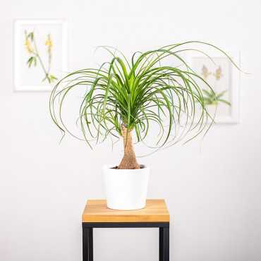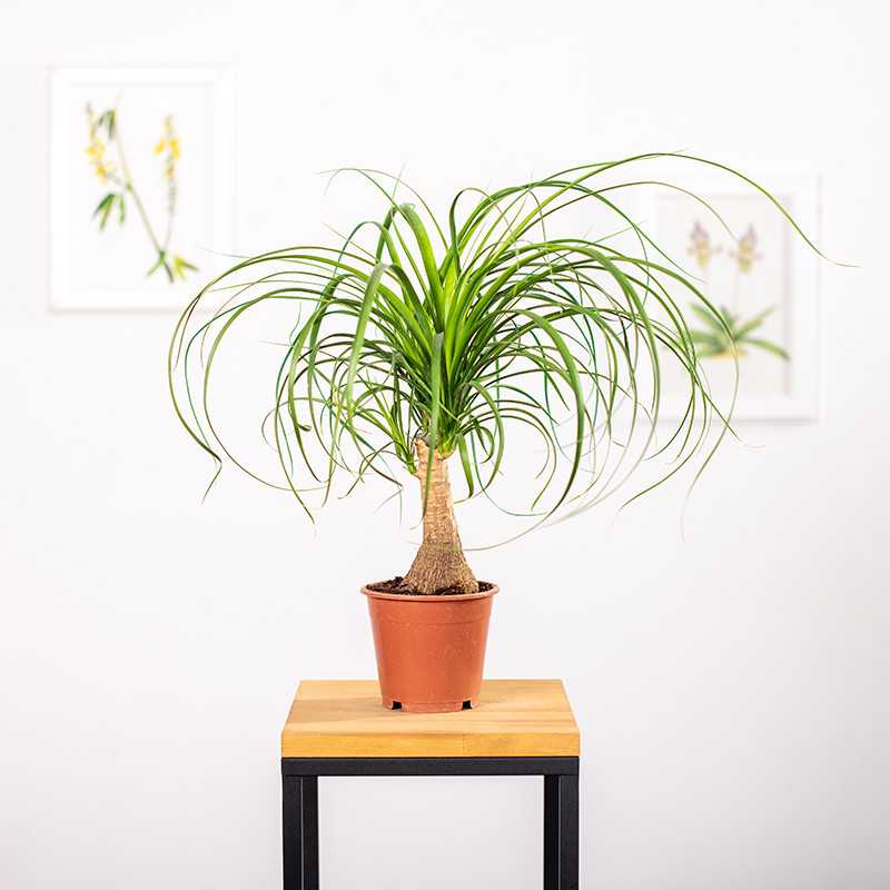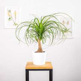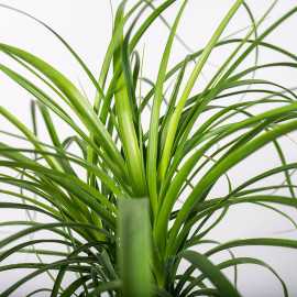 Nolina (Beaucarnea) pochodzi z Meksyku, gdzie dorasta do 6 - 9 m. Forma "z Nogą" to roślina posiadająca pień z charakterystycznym zgrubieniem u podstawy. W naszych warunkach od 50 do 150 cm w zależności od zakupionej karpy. Jej gruba, nabrzmiała, brązowo szara o chropowatej powierzchni łodyga przypomina słoniową nogę, stąd prawdopodobnie wywodzi się niemiecka nazwa tej rośliny - słoniowa noga. U nas czasem nazywana jest palmą butelkową - łodyga przypomina butelkę, u góry zaś tworzy pióropusz wąskich liści. W łodydze znajduje się rezerwa wody, co pozwala roślinie przetrwać okres suszy.