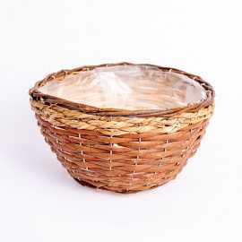 Niski okrągły kosz przeplatany. W środku posiada folie zabezpieczającą przez zabrudzeniem czy zalaniem.
