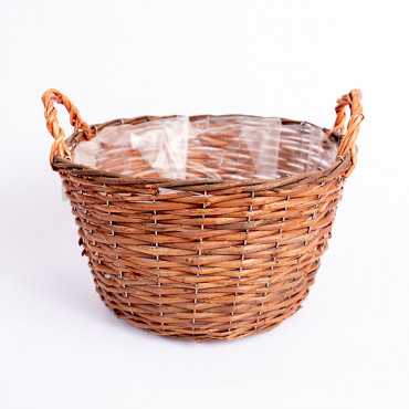 Okrągły kosz przeplatany z uchwytem. W środku posiada folie zabezpieczającą przez zabrudzeniem czy zalaniem.