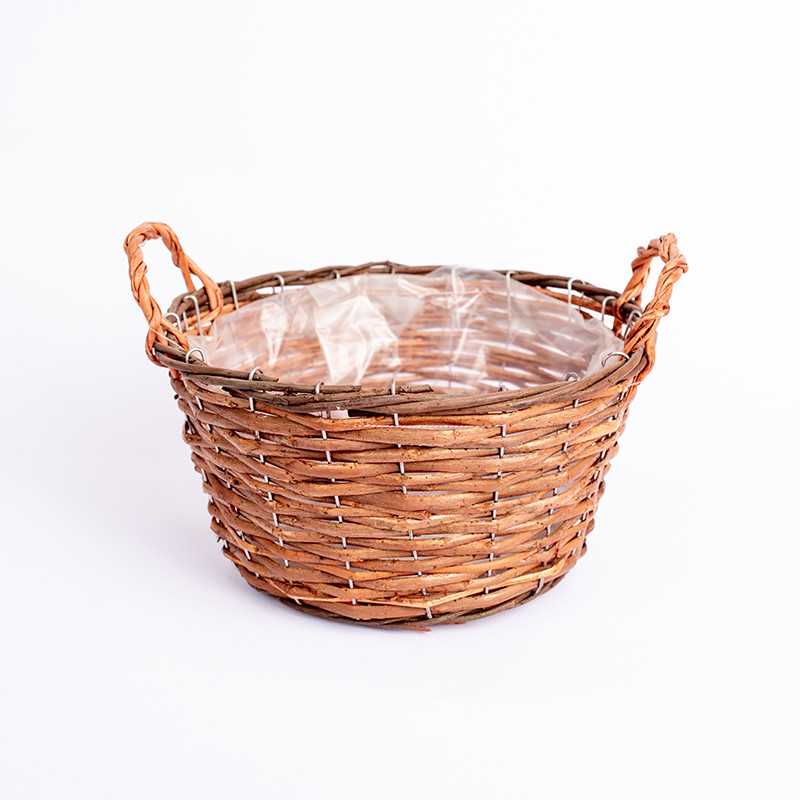 Okrągły kosz przeplatany z uchwytem. W środku posiada folie zabezpieczającą przez zabrudzeniem czy zalaniem.