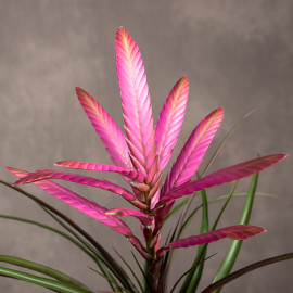 Roślina bromeliowata, która zachwyca swoim egzotycznym wyglądem. Jej charakterystyczny, wachlarzowaty kwiatostan w intensywnym różowym kolorze, z którego wyrastają delikatne, fioletowe kwiaty, sprawia, że jest prawdziwą ozdobą wnętrza.