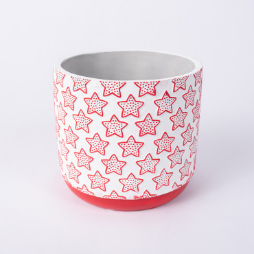 Osłonka betonowa w świąteczny wzór z matowym wykończeniem. Nie posiada otworu, dlatego przy przesadzaniu roślin należy pamiętać o warstwie drenażowej np. keramzyt bądź umieścić roślinę w doniczce produkcyjnej.