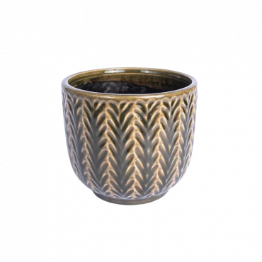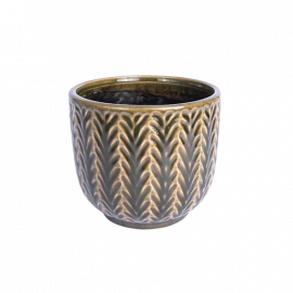 Osłonka ceramiczna z wytłaczanym wzorem jodełki w odcieniach zieleni. Zewnętrzna powierzchnia osłonki jest szkliwiona. Odporna na ścieranie i wytrzymała.