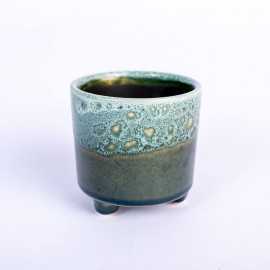 Osłonka ceramiczna na nóżkach w kolorze ciemnej zieleni z fakturą. Nie posiada otworu, dlatego przy przesadzaniu roślin należy pamiętać o warstwie drenażowej np. keramzyt bądź umieścić roślinę w doniczce produkcyjnej.